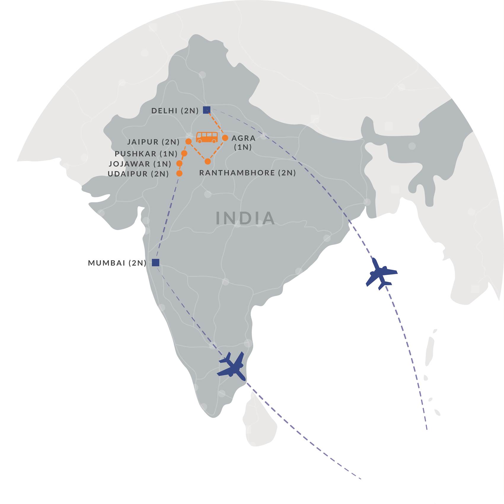 - Land only price: Tour starts from Arrival transfer in Delhi to Departure transfer in Mumbai; excluding any international air tickets.